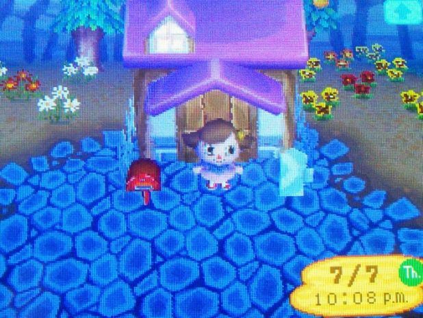 I didn’t play much in Dafdilly yesterday, partly because I spent time looking for the perfect town on my other gamecard, and partly because Nook’s was closed for remodeling and I was disgusted with all the items littered on the ground that I couldn’t sell. It was thunderstorming, though, and I do love stormy nights in Wild World.