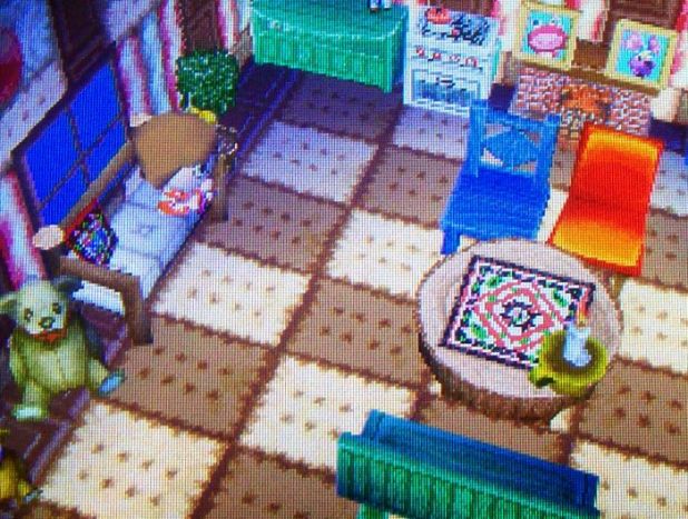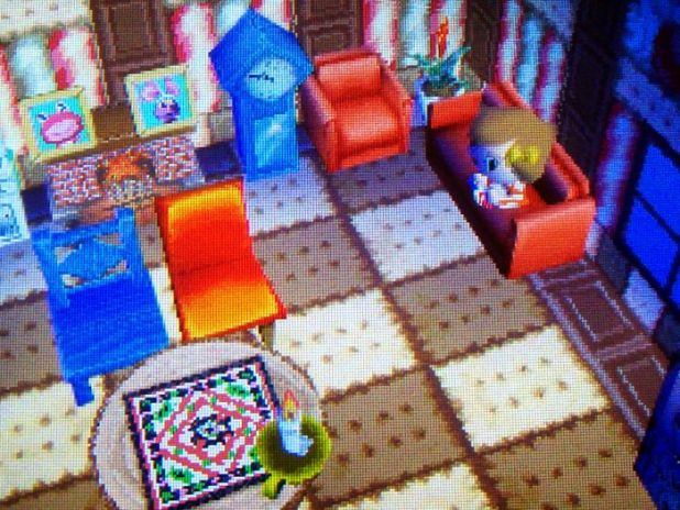 It’s inspired by Melba’s house! 🙂 I’ll probably change it to something summery when I have more options. I received most of this furniture as presents from neighbors, not from Nook. Sending one-line letters with presents attached gives you fruit/clothes in return (which I need to do badly), two-line letters give you furniture (which I’ve been doing), and three/four-line letters give you wallpaper and flooring.