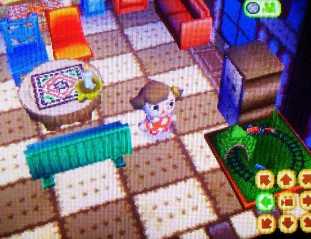 For the first time here in my new town, Tom Nook isn’t expanding his shop again the very next day. Before I can upgrade to Nookington’s, I need to have a character from my dad’s town visit (through DS-to-DSing) and buy something first. Today I was happy to buy a watering can, slingshot, and fairy-tale floor to replace my green carpet! 🙂
