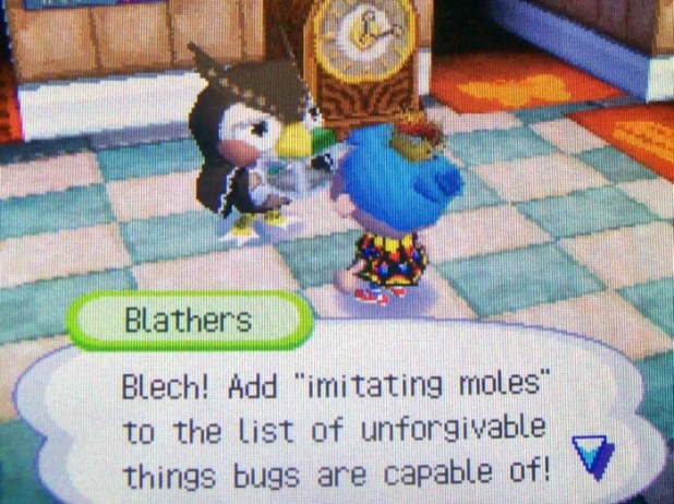 My town happened to have an empty slot during the WiFi session, so Lily moved in (to replace Curly, who finally moved recently). Lily remembered me from a previous visit to Bundeena. 🙂