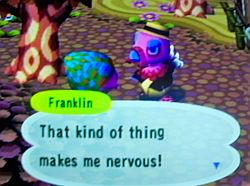 I think it’s crazy that Franklin even showed up, I guess he thought the Festival could be fun as long as he took precautions like stealing the silverware. 😛 It isn’t too hard to find him because he’s always poking his head out, so you can see the movement easily even at the corner of your eye.