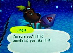Before Jingle can give a present you have to find him in random acres throughout town about five times: