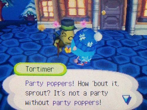 Instructions: This isn’t a game, but we can set off some party poppers at some point. It would be awesome if one of us got a great picture of setting off the party poppers in unison. Since timing party poppers by saying saying “Now!” or counting using AC:WW’s chat system rarely works, I thought setting a timer could be helpful. I could say a time, and as soon as the timer shows that time we can all set off the party poppers together. 🙂