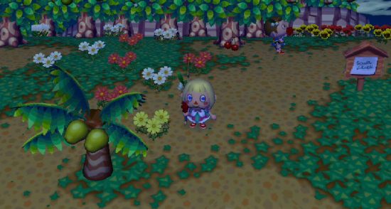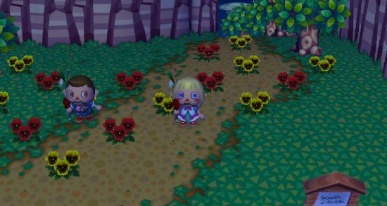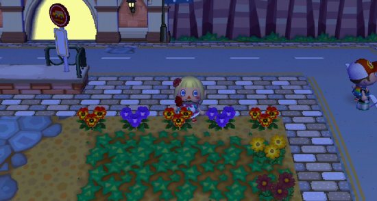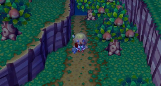 A nice worn dirt path on the ramp, with stepping stones. It’s neat that in City Folk you can take advantage of the grasswear to make dirt paths around town, and then add patterns on top that blend in with the dirt.