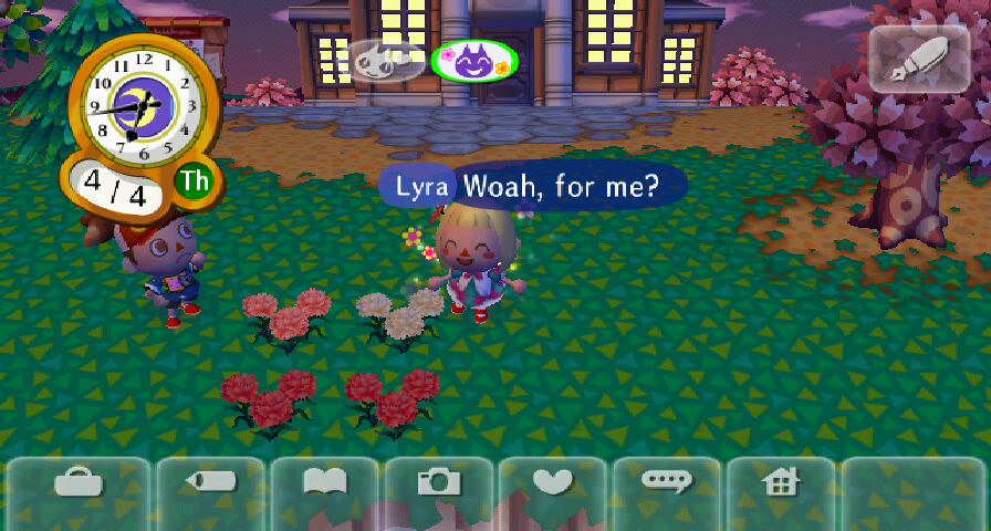 I disagree about Seahaven, your town is beautiful. It looked so nice with the cherry blossoms and the purple sky! I especially like your little forest to the right of the waterfall. We really didn’t do too well with those party poppers and sparklers, did we? 😆 Maybe when we do a big group WiFi with Choco and Will we can try again. It’s gonna require quick reflexes though. xD