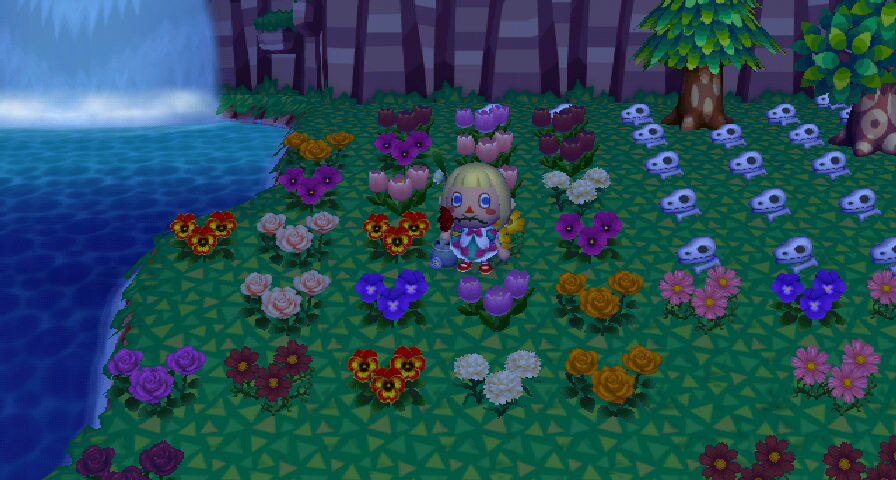 I like to do stepping stone / stepping “bricks” 😛 as a side path, and I usually do those complex, wider paths for the main path. Once I tried to do stepping stones in AC:WW, but the stones had to be brown. xP It’s nice that AC:CF and AC:NL allow for more color options than AC:WW’s palette 12.
