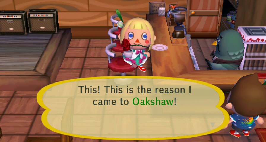 Lyra was pleased with Oakshaw’s coffee! I think this was my first cup of coffee in City Folk, haven’t gotten any in my town town yet. >_>