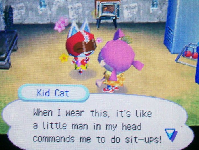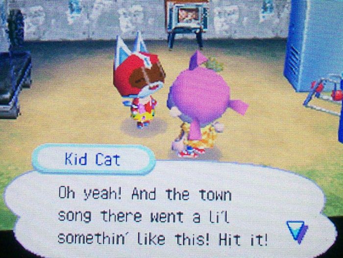 Kid Cat hasn’t even packed up out of this town yet, he’s been sick for a while. Today he is finally well again thanks to my help 🙂 (He gave me a detour arrow -_-) I was actually considering leaving him in Imladris and trying to shoot for a different jock as a dream neighbor for Dafdilly. It turns out that a lot of my dream neighbors have the green house style, and I don’t want a disproportionate number of green houses in my town. Kid Cat was one of the neighbors who had the green house style. My thinking right now is maybe Roald xP I think he would be fitting for Dafdilly because of his playful house, with all the toys and K.K. Parade playing! He also looks chubby, which is kind of funny for a jock, and he has the pink house style with wooden fans in my town. He actually used to live in Dafdilly at one point, but I let him move because I wanted Kid Cat instead. >_<