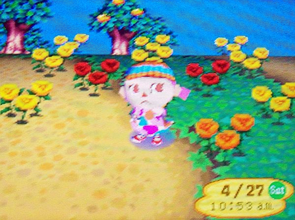 Orange roses: None. 😦 Weird, right? I often have red and yellow flowers by Nookington’s because it matches well, but no orange roses yet. Obviously some of my hybrid-growing farms in Dafdilly were more effective than others… 1. Just grew my first recently!