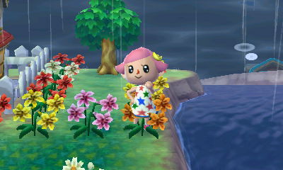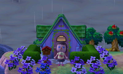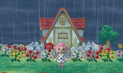 The day before yesterday, playing a bit before bed, I saw the first thunderstorm in my town! The only other time I had seen it pour like that was in the Ancient Fish Encoun-Tour on the Island. Though it’s continued to be stormy in my town, so the novelty has worn off some. xP