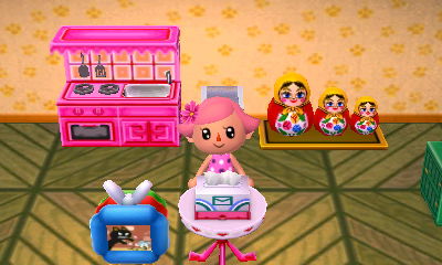 After expanding Violet’s house twice, I can finally see the flowery decorations on the wall! 😀 I paid off her loan again today, so she’ll have an upstairs room as well tomorrow.