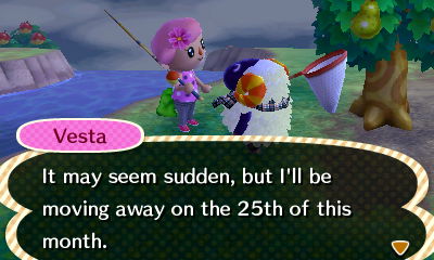 Aww, Vesta will be the first to move out of Citàlune. She’s one of my favorite neighbors in town, so I’ll be sad to see her go. But her house is in a spot I want to build something, and there are other neighbors I like, so I’m letting her leave.