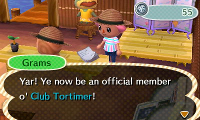 There wasn’t any furniture I needed on the island, but I bought a straw hat and a membership to Club Tortimer. I’m not sure how it works exactly, but I guess I’ll try it out sometime.