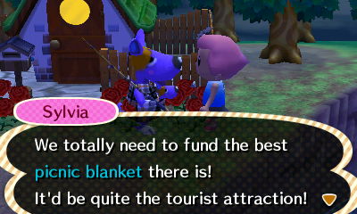 That night I got my second community project request! But I’m not saying it’s because of the letters or anything like that! It’s probably just random whether they request a project or say something else instead. The picnic blanket isn’t on my list of projects I want, but I do like it! Maybe I’ll think about building it, I can always demolish it later.