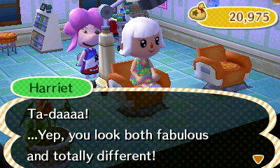 Belltune has Shampoodle, so I took the opportunity to get my hair done! I was getting really tired of that pink haircut… Once Shampoodle is built in my town, I’ll probably continue to play around with the color and cut, so this isn’t necessarily the look I always want to have for Estel.