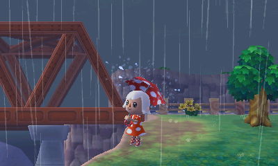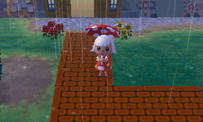 2. D’awwww, I love your cute red polka-dot rain outfit! So cute! 😀 How come you keep getting such a poor turnout at your ceremonies? My villagers have been prompt about attending. 😉 Also, the castle-in-the-clouds theme that you’ve got going on with Estel is lovely! I love watching how her house develops on the inside to compliment the outside!