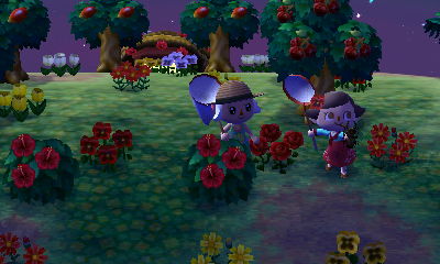 It’s morning in my town, but nighttime here — perfect for bug-catching! And I think it might have been Rain’s first visit to the island (or one of the first), so I bet she was adding lots to her encyclopedia.