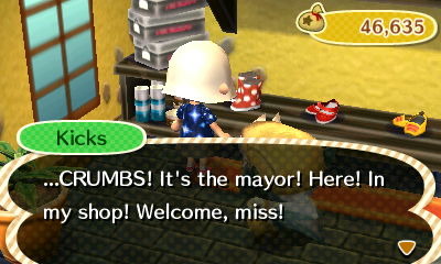 “Crumbs, it’s the mayor! Here in my shop!” So cute!! I used to kind of get bothered in WW that no one would give me credit for picking up weeds, or placing paths, etc… and now they just are honored if you come to talk to them!! So cute 😀