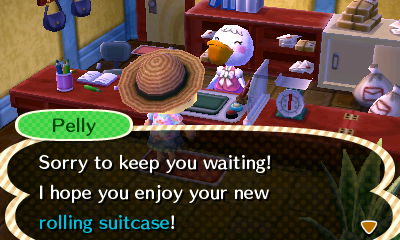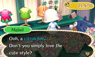 My neighbors tend to send each other clothing, and at first they put them on to wear, but then they’re often displayed in their homes later on. I wasn’t thinking when I did two fish-catching errands for Melba, but yep, they’re in her house now. 😛 That’s weird about the lotus shirt mailed to Lily going to someone else’s house! 😕 I wonder if it’s a bit trickier to re-decorate their houses through mailed presents in this game, but I’ll give it a try. Another way to make changes to their furniture is to put items up in Re-Tail for them to buy, or carry items in your pockets as you walk around (sometimes neighbors will want to buy stuff from you that you’re carrying).