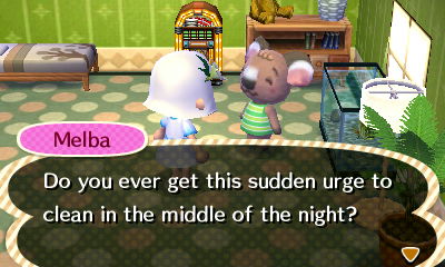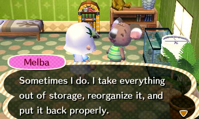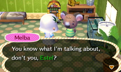 Haha I do, it’s so great to have Melba in my town. 🙂 Though I might have started neglecting some of my other neighbors a bit, like Carmen, who used to be my favorite before Melba moved in, so I feel a bit bad about that. I should try to pay attention to my other neighbors too 😛