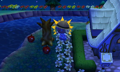I went ahead and bought the fairy-tale wall for Lyra’s house, which has already gotten several other fairy-tale house parts: the mail-box, roof, and door. But what’s a bummer is that I might end up moving Lyra’s house from its current location (depending on where I choose to put the café), so then I’ll have to start over. xP Oh well! It’s been interesting for me to see how Lyra’s fairy-tale house looks with the paths I have, since I think this current mosaic path matches pretty well with the fairy-tale color scheme. ^_^ But I still want to make a new mosaic path that will incorporate moons/suns/stars into the pattern, one of the many things on my town improvement to-do list. I also badly need to do some tree re-organizing. I started by planting some regular saplings around the town tree, but I quickly ran out even though I’ve been hoarding saplings since the gardening shop opened. This might be a bit of a long project, so please excuse my town’s messy layout of trees!