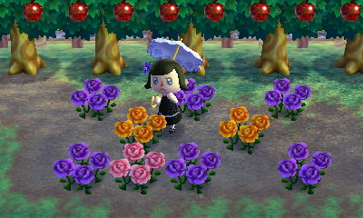 Thanks! I’ve been watering the flowers lining my paths every day, which has resulted in a fair amount of hybrid lilies and violets, but I’d say all my other hybrid types are lacking. Don’t even have any purple hybrids yet. 😕 But I do want lots of hybrid lilies and violets in my town (I think they’d look great with the fairy-tale decorations I plan on having), so I’m not complaining ^_^ Yeah, as far as I can tell, the hybrid red roses look the same as the regular red roses. I think I might have gotten a second one, only I’m not 100% sure because I didn’t remember to check the patch until the middle of the day. (What if it’s just a regular red rose planted by one of my neighbors? >_< I'm at least pretty sure the first one is real, though.)
