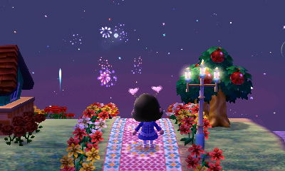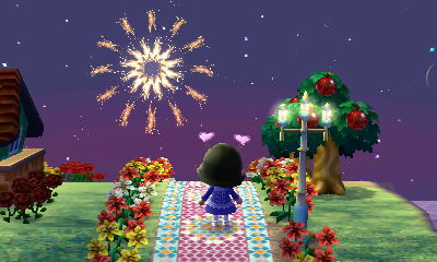 A cute heart-shaped firework, matching my new heart bopper accessory from Isabelle.