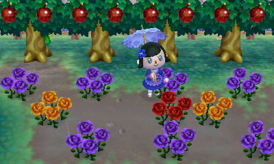 I got another hybrid red rose, so I guess I can start trying to make blue roses. I won’t get my hopes up, though. xP I had a patch of black and purple roses set up in my Wild World town for a long time and never managed to grow a blue rose. I think it’s because I had so many other (larger) hybrid-breeding patches around town, so the chances of a blue rose spawning from my smaller patch of black and purple roses were very low. And it should be the same deal here. I hope I can get blue roses eventually, though!