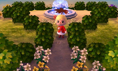 I think it'd be a good idea to put in a little relaxation area, or something, where you put your hot spring! The only problem with having the spring there is that it's about the same size as the fountain, and it's on the same line as the fountain, and that bugs me. 😛