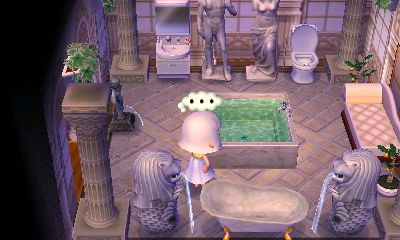 Thanks for the feedback! I like the idea of a giant bath-house, but I'm not sure if I'd have enough bathroom-themed furniture to fill it up, so I'm reluctant to expand the room if I have any uncertainty (since I think house upgrades are permanent, you know? o_o)