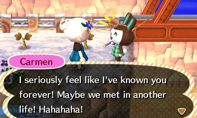 Aww, I’m sorry you’re having trouble with your dream neighbors! I’ve had a few “easy” ones to get like Paula and Gloria, they aren’t very sought-after.. And I also have another gamecard that I’ve used to get villagers who are more popular, like Julian and Bruce, and I plan to transfer them over to Citalune when the opportunity arises. I’ll try to keep an eye out for Chrissy and/or Francine in my other town ^_^ (But don’t get your hopes up too much :/) And yeah, who knows, they may show up at your campsite soon! 😀