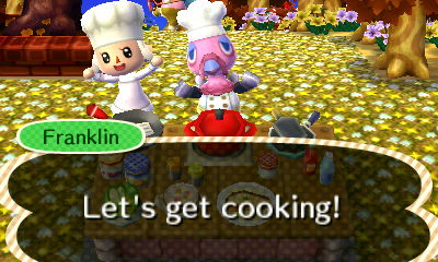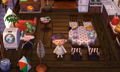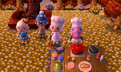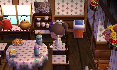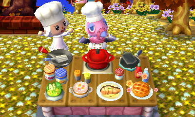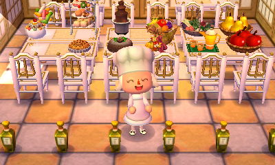 Those items would look so cute together in a bakery or a kitchen, with some birthday cakes or something nearby! ^_^ I agree, and I’m really impressed by the holidays in New Leaf in general! A lot of these holidays were in the GameCube version and City Folk as well, but they weren’t as detailed back then. In the Harvest Festival for AC:GC, for example, all you had to do was fetch from silverware from the table for Franklin (to protect him from being eaten). Getting to help cook a feast is just so much more involved and interesting than that!