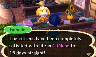 • Well I have two copies of the game, which I take advantage of to make more money. Like selling perfect apples from Citalune in my second town, which has perfect cherries as its town fruit along with the Bell Boom ordinance. (And selling perfect cherries from my second town in Citalune.) I can also take advantage of it with turnip prices and stuff. 🙂