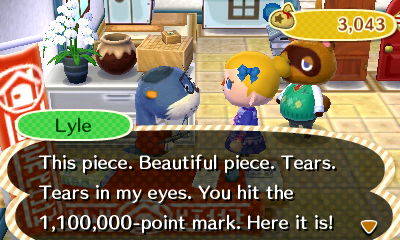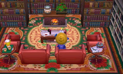 I didn’t know Lyle comes to your house after completing your house debts.. 😮 (I didn’t finish mine because I don’t wanna add a back room.. xP) Congrats on completing so many accomplishments!! Hehe.. as always, Your town is very lovely and I love the houses and rooms! 😀 (I personally like the library one… maybe because i like the atmosphere they have in libraries.. xP) Good job on your town so far 😀