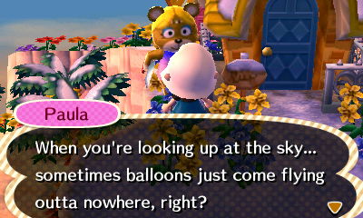 I never experienced a meteor shower before! Hehe, I saw that tumblr post back then! 😀 Yeah! I could totally imagine Wendell giving out those balloon furnitures like he gave bubble wands and stuff to players back at city folk! xD and I absolutely LOVE your town early in the morning! I bet it would fit with the 2-3 AM tune, I guess? …even the 5 AM music, if possible. xD Early morning music in animal crossing always have a special place in my heart..idk, maybe because I always wake up at early mornings for school and I play animal crossing immediately just to check my town out. xP