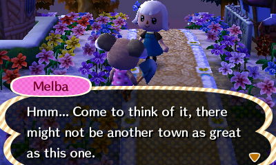 Aww, Melba’s reaction after convincing her to stay. It’s not like I agree with her about that, but it’s nice to think that my villagers like living here! 🙂