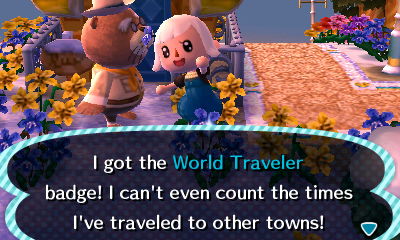 This Letter Writer badge was kind of an interesting one to get! I’m not usually a huge letter-writer, but I’ve been sending lots to Erik in the hope of boosting my friendship with him so that he might move sooner. I don’t know if this strategy/method works at all, but it’s based on my personal experience in the past; the few times I sort of ignored certain villagers (for example, I ignored Henry for a while…), they took forever to move, and finally moved out once I started becoming better friends with them. And I know that some of the neighbors I have the highest friendship with (Melba, etc.) have asked to move out multiple times. My thinking behind this theory is that once you’ve reached a high friendship threshold with a villager, the game feels that you have gotten to know the villager enough for their stay in town to feel complete enough to then let them go and meet someone new.