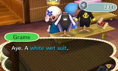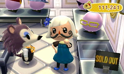 Katrina said that my lucky item was a men’s accessory one day, so I decided to try one on and go island-hopping on Club Tortimer looking for exclusives (specifically, a pink wetsuit), hoping that wearing the lucky item would help some. I always feel guilty doing this because I know many people go to CT to socialize and meet people, whereas I’m usually just looking for items. -_- And I’m sure I looked especially ridiculous this time, with my mustache. xP
