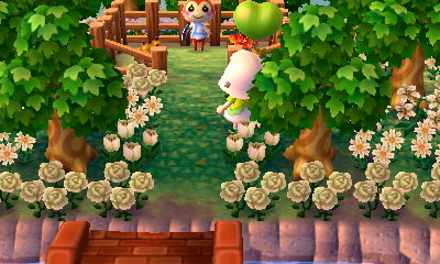 I have! ^-^ I’m keeping things relatively simple and it’s not like I’m putting every PWP in the game all over the place or anything (still have a lot of fairytale streetlights, for example), but it’s really nice to have things like streetlights in just the place I want them, not in a random place to repel houses. Nope, I haven’t updated my dream address, but that’s what I’ve been working towards lately, getting my town in order and fixing up the houses, PWPs, landscaping and gardening so that I can do an update during the cherry blossom festival soon 🙂 The moon flower pattern actually isn’t up yet, haha, flower-arranging is one of the last stages I go through xP I’m working on Fern’s house at the moment.