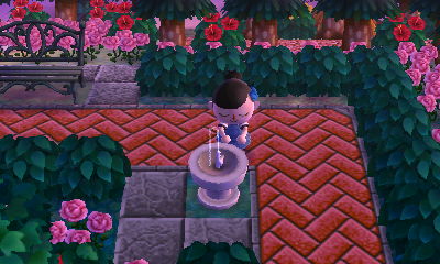 Stopping to get a sip of water ^^ The water fountain’s a nice little detail by the path.