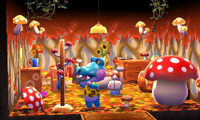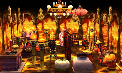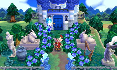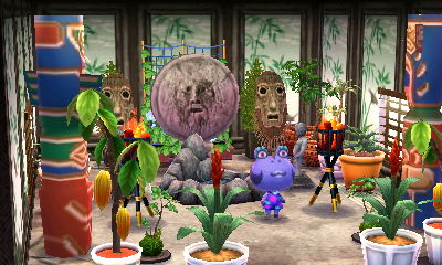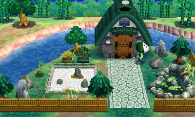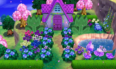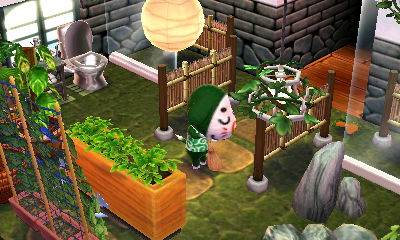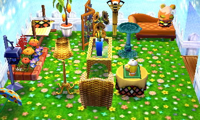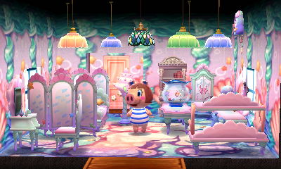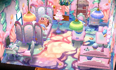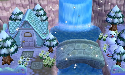 This is a theme that appeals to me greatly, evidenced by the fact that I already have a room like this in my AC:NL town. I had fun with my choice of the acre that has lots of ponds, as if they’re ‘natural baths.’ And I loved how there was a rainbow in the exterior shots!