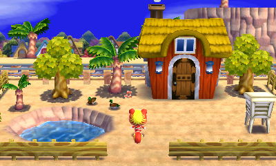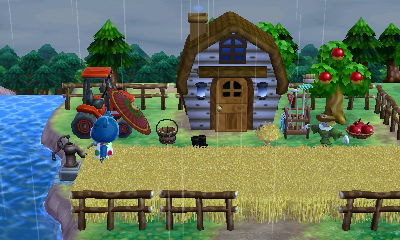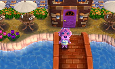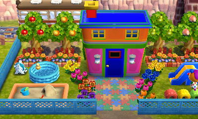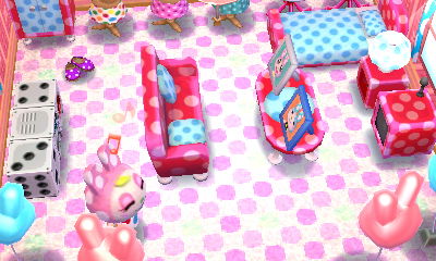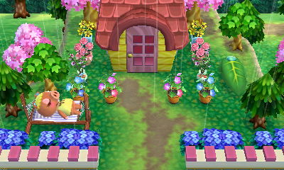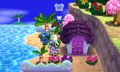 The fun thing about Bunnie’s house here is that since I have Bunnie’s amiibo card, and I have the game Amiibo Festival, I was able to put Bunnie’s cute little fairytale-style house that I designed into my board game town on Amiibo Festival! And I put her house right above a “fairytale park” I built in my board game town, so it looks quite fitting. It’s my favorite part of my board game town! ❤