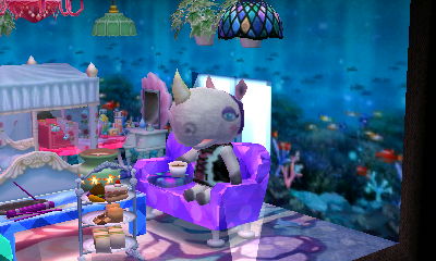 Very happy with what I did for Colton’s house so far! I feel like I have a good idea for what his tastes are (elegance, grandeur, likes fashion & music) from having him so long in my AC:NL town.