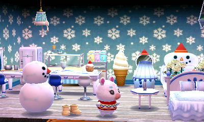 Didn’t get a good picture of the exterior, whoops. The main room is simple enough (jingle series), but the back room was supposed to have a Santa-toy-workshop type feel except it’s super tiny!