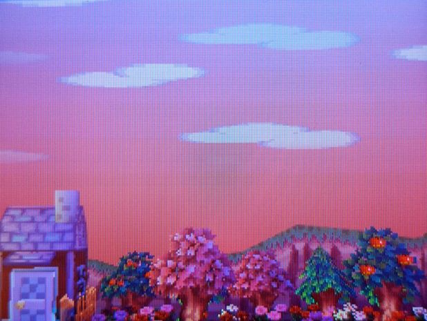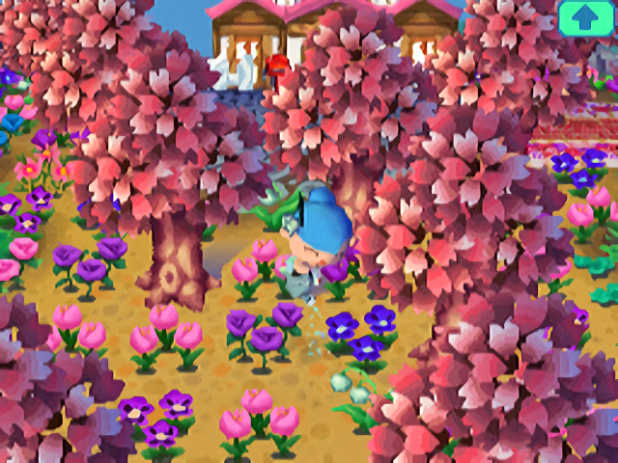 The area below the museum still has the same pink/yellow/white color scheme that it had before — I still like it, so why fix what’s not broken, I suppose 😛 I did add some more trees and flowers and spruce it up for the cherry blossom festival, though:
