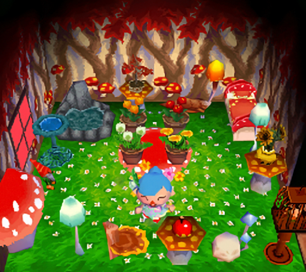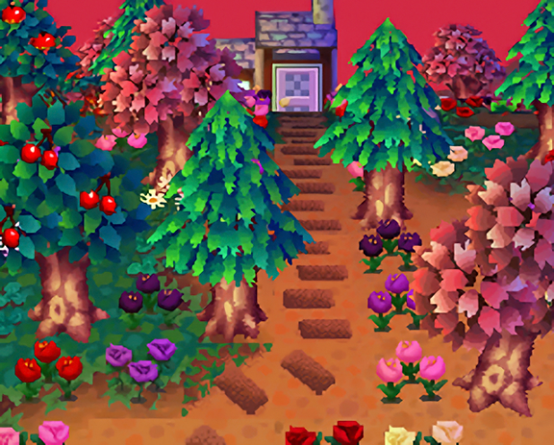 I was inspired by the aesthetic of forest towns in the AC:NL community, trying to incorporate a fairy ring into my own little Dafdilly forest. 🙂