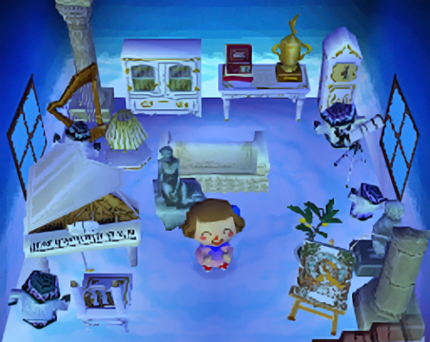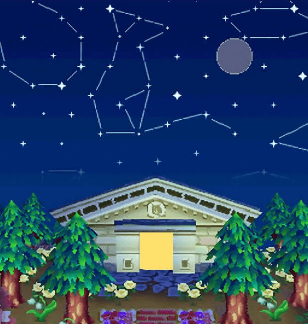 The museum’s simple white rose garden at nighttime. When I first saw that moon I thought it was a glitch, but I must have forgotten what AC:WW ‘new moons’ are like 😛 Wish a prettier phase of the moon could have been out tonight.