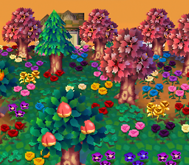 Butch’s house — such a pretty home for a cranky neighbor, and once you walk inside, it’s all posh black & white xD I love the “rainbow” of cosmos in this area. There aren’t really any cool-colored cosmos, so I think they look warm, sunny, vibrant, and tropical when grouped together — perfect for the beach areas.