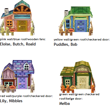 When I first started picking dream villagers, ones like Stitches and Static and Rosie, it seemed like an overwhelming number of them had the dark green house style that Melba has, and I kept getting that house style over and over before. So I got kind of sick of it and it’s only represented by Melba in my town now, lol.