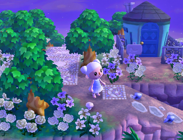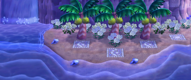 Between the sun and moon beaches, the moon side is probably my favorite. It’s not too big, not too small; it has the dock and a few cozy nooks along the clff; and I love the peaceful atmosphere given off by the white flowers.